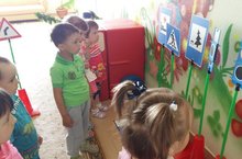 Во второй младшей группе была проведена в вопросно-ответной форме поучительная беседа на тему «Безопасность на дорогах». Цель беседы: Развивать устойчивые навыки безопасного поведения на улице. Закрепить знания детей о работе светофора, о дорожных знаках и их назначении. Обобщить знания о правилах уличного движения. Воспитывать у детей культуру поведения на улице. Дети с интересом послушали, отвечали на вопросы, с большим желанием принимали активное участие в предложенных воспитателем играх. Беседа закончилась созданием сюжетной композиции (лепка) «Дорога, машина, светофор».