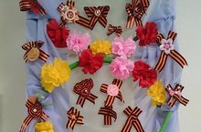 В нашем детском саду прошла интересная выставка "Георгиевская ленточка". Георгиевская лента -это символ Победы, цвета которого обозначают следующее: черный цвет -это дым, а оранжевый -пламя.