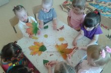 В первой младшей группе сегодня познакомились с осенними листьями разукрашенными в разноцветные цвета: жёлтые, красные, багряные, оранжевые. Дети с интересом потрогали листья на ощупь.