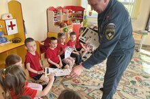 Было очень познавательно и интересно. В конце Хузин И.Т. воспитанникам детского сада вручил памятные листовки с правилами пожарной безопасности.