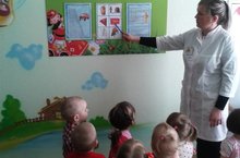 Задачей воспитания у детей было чувства осторожности в обращении с электроприборами, спичками и пожароопасными предметами. Дети ясельной группы вместе с воспитателем Галиевой Р.А., рассматривали материалы наглядной агитации по противопожарной тематике на информационных стендах ДОУ.