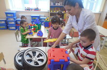 Сегодня воспитанники средней группы во время кружка английского языка «Funny English» повторили цвета с помощью конструктора из класса робототехники. Они строили дома, машины, тракторы из разноцветных деталей и называли цвета по-английски. Детям занятие очень понравилось.