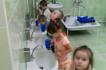 Икенче кечкенәләр төркемендә балаларны һәръяклап чыныктыру өстендә эш алып барыла. Яланаяк йөрү, кулны терсәккә чаклы суык су белән юу, саф һавага чыгу, режим белән туклыклы, витаминнарга бай ашау, вакытында йоклау, тамакны тозлы су белән чайкау - болар барысы да организмны чыныктыруның төп чаралары булып торалар.