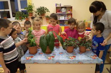 Балалар гөлләрне шатланып тәрбиялиләр.