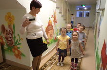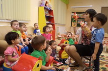 С нашим воспитателем.
