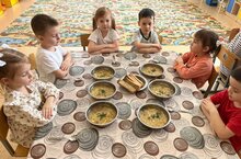 В начале февраля , мы посадили лук, и вот долгожданный момент настал, воспитанники собрали свой первый урожай. Мы поговорили с ребятами, что лук очень полезен. А сколько было восторга, когда ребята увидели перья лука в супе, и конечно же съели, с большим удовольствием, ведь он был таким вкусным, аппетитным.