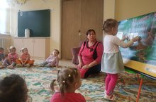 Икенче кече яшьтәгеләр төркемендә сөйләм үстерү эшчәнлеге узды. Балалар белән урман турында, анда яшәүче хайваннар турында фикер алыштык. Хайваннарның тышкы билгеләрен һәм гадәтләрен белдерә торган сүзләр хисабына балаларның сүзлек запасын арттырылды.