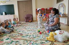 Икенче кече яшьтәгеләр төркемендә сөйләм үстерү шөгыле узды. Балалар белән автобуска утырып, әби-белән бабайның ишегалдында сәяхәт ясадык. Хайваннарны чакыру эндәш сүзләрне өйрәндек. Аларны яраткан ризыклары белән сыйладык.