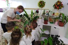 В уголке природы дети наблюдают за комнатными растениями, условиями необходимыми для их роста и развития.