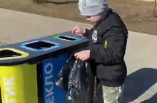 Гарипов Ризат из средней группы понимает важность раздельного сбора мусора.Молодец!!!