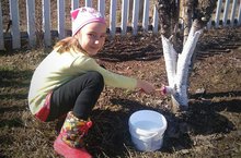 Фазлияхметов Аскар помогает родителям ухаживать за деревьями.