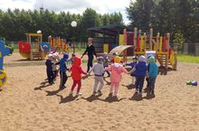 22 июнь көнне «Балачак” балалар бакчасының икенче кечкенәләр төркемендә тәрбияләнүче балалар “Саф һавада физкультура” шөгылендә тәрбиячеләре Исламова Р.Р. белән бакчабыз территориясе белән таныштылар. Тирә-юньдәге матур чәчәкләргә карап сокландылар, саф һава суладылар. Саф һавада вакытны файдалы үткәрү балаларга бик ошады, алар канәгать калды.
