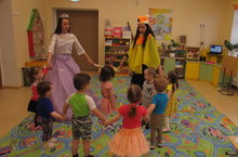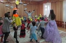 Туган көн бәйрәмнәрен музыкаль залдагына түгел, ә карантин булу сәбәле аерым төркемнәрдә дә үткәрдек. Балалар әкият геройлары фея һәм төлке белән туган көн ияләренә теләкләр әйттеләр һәм түгәрәккә басып "Аккалач" җырын җырладылар.