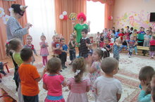 Безнең бакчада бик матур гореф-гадәт яшәп килә. һәр ай саен без барыбыз да җыелып үтеп баручы айда туган балаларны зурлап котлыйбыз. Февраль ае бәйрәме дә бик матур үтте. Кунакка килгән клоун Тимошалар балалар күңелен күреп төрле уеннар уйнатып, биетеп җырлаттылар.
