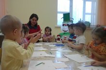 Буген, 18 январь көнне беренче кечкенәләр төркеме балалары тәрбияче Исламова Р.Р. белән кунакка килгән Кар бабай белән “Кар атышлы” уены уйнадылар. Балалар аннары пластилиннан үзләре дә түгәрәк формасындагы шарлар әвәләделәр.