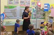 Бүген, беренче кечкенәләр төркеме балалары тәрбияче апалары Шагиева Л.Р. белән тәүге тапкыр юл йөрү кагыйдәләрен өйрәнү бүлмәсендә булдылар. Кунакка килгән татар малае - курчак Азамат белән алар светофор төсләрен өйрәнделәр, билгеләрнең күп төрле булуын, җәяүле һәм машина юлларын махсус макетларда карадылар. Куркынычсыз хәрәкәт итүне өйрәнү өчен бакчабызда барлык уңайлыклар да булдырылды. Күптән түгел бакчабызга җиһазландырылган АВТОКЛАСС кайтты һәм алар махсус кабинетына урнаштырылып тезелеп тә куелды. Хәзер безнең үз электрон светофорыбыз, юл, шәһәр макетлары, билгеләр һәм кагыйдәләрне кулланып карап өйрәнү өчен күп төрле әсбапларыбыз бар. Әлеге шартлар һәм махсус шөгыльләнүләр балаларыбызны юл халәкәтеннән саклар һәм барыбыз өчен дә һәрвакыт имин юллар булыр дигән теләктә калабыз.