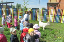 Эшчәнлекләрдә алган белемнәрне, үз куллары белән ясаган тәҗрибәләрне без экскурсиягә чыккач ныгытабыз. Чөнки бала табигать белән якыннан таныша. Аларда күзәтүчәнлек тәрбияли, гадәти әйберләрдә дә төрле яңалыклар күрергә, әйләнә-тирәнең матурлыгын тоярга, уйланырга, эзләнергә өйрәтә.Бакчабыз нәкъ табигатнең кочагында утырганлыктан, балалар белән күзәтүләрне үткәрү бик уңайлы. Икенче кечкенәләр төркеме бу көннәрдә, бик кызыксынып, биләмәбезнең еш кунагы кәҗә белән "дуслашты. Балаларга экологик белем hәм тәрбияне без халык уеннары аша да алып барырга тырышабыз. «Болар нинди агач?», «Бу кайсы агач яфрагы?», «Уйлап кара әле» h. б. ш. дидактик, хәрәкәтле, татар халык уеннарын даими кулланабыз.
