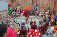 1 апрель елның иң күңелле бәйрәме. Тәрбиячеләребез иртә яктан ук балаларыбызга яхшы кәеф бүләк итеп, көн дәвамында һәр төркемдә шатлыклыклы мөхит тудырырга тырыштылар. Ә кичке якта балаларның иҗади сәләтләрен ачу, тапкырлыкларын үстерү, күңелләрен ачу һәм сәламәтлекләрен ныгыту, барлык балаларның да активлыгын арттыру максатыннан зур чара үткәрдек. Музыка залын без цирк аренасына ошатып бизәдек. Чарада, иң элек "Су - яшәү чыганагы" атналыгына багышлап фокусчылар су белән төрле экспериментлар күрсәттеләр, балалар аларны һәр тәҗрибәгә шаккатып, ышанып кабул итте. Ә тамашага килгән Бим һәм Бом (музыка җитәкчесе Сафина М.Ш., хезмәткәр Каюмова А.) балалар белән төрле кызыклы уеннар оештырдылар, аларны көчтә, тизлектә, тапкырлыкта сынадылар. Тамаша азагында балалар рәхәтләнеп биеделәр, ә соңыннан бергәләшеп фотога төштеләр.