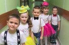 Иртә таңнан ук Бим белән Бом (музыка җитәкчесе Сафина М.Ш., физрук. Закирзянова А.Р.) әти-әниләрне һәм балаларны шаян мәзәкләр, шаяртулар, күңелле көйләр белән каршы алдылар. Балалар да әзерләнгәннәр: төрле маскарад күзлекләр, париклар, бантиклар, түгәрәк клоун борыннарын һәм башка кызыклы башлыклар киеп килгәннәр. Иртә таңнан башланган яхшы кәеф көне буена җиткәндер дигән теләктә калабыз!