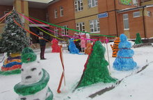 Районыбызда кар сыннары ясау һәм оешма биләмәсен бизәү традициясе сакланып килә. Нинди генә һава торышы булмасын, ел саен, балалар һәм гомумән үзебезнең яңа ел рухы күтәренке булсын өчен матур кар сыннары ясарга тырышабыз. Бакчабыз биләмәсен без татар һәм рус әкиятләре персонажлары белән бизәдек. Капкадан керә-керешкә Кыш бабай һәм Кар кызы, "Тукмар белән Чукмар" әкияте персонажлары,чыршы тирәли карусельга утырган кытай календаренең 12 билгесе, "Кәҗә белән сарык" әкияте геройлары сезне каршы ала.Шулай ук биләмәбездә өч кит өстендә торучы җир шары, "Колобок", "Теремок", "Репка", "Өч аю" әкиятләре геройлары ясалды, балаларга эстафета уены өчен боҗралар белән елан, уртага кар атып уйнар өчен ( для метания в цель) махсус урын ясалды. Бу әкияти ял паркы балаларыбызга бик ошар һәм алар саф һавада күңел ачып чыныгып үсәрләр дип ышанып калабыз.