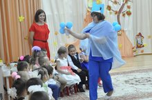 Осень дарит нам праздник 17.10.2015 Для детей праздники – это настоящее море веселья и неограниченного счастья. И хоть осень и называют «унылой порой», тем не менее, кто как не дети больше всего радуется ярким разноцветным листьям, опавшим с деревьев и дождику, после которого можно вдоволь набегаться в резиновых сапогах. Именно поэтому осенние развлечения в детском саду – одни из наиболее любимых у детей. На этой неделе мы с каждой группой провели праздник посвященный осени и золотому урожаю - хлебушке. С королевой осени дети пели песни и танцевали, разученные с музыкальным руководителем Мадиной Шаукатовной, собирали грибы, листья, играли различные игры.