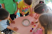 Бу атнада бакчабызда тылсым атнасы башланып китте. Шул уңайдан мәктәпкә әзерлек төркемендә төрле тәҗрибә, экспериментлар уздыру башланды. Төсле сулар, сөттәге рәсемнәр аларга бик ошады.