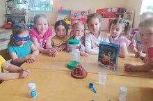 Элеге атна "Тылсымлы атна" дип аталды. Шул уңайдан, зурлар төркеме белән су, уксус һәм төсле акбур кушып тәҗрибә ясадык. Балаларга экспериментагы үзгәрешләр бик ошады. Суга салынган акбур белән уксустагы акбур төрлечә тизлектә эрүенә, реакциягә килүе балаларны бик гаҗәпләндерде.