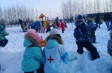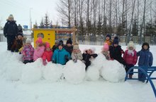 Потеплело - плюс один, Значит, в группе не сидим - Строим крепость снежную, Всей детворой, конечно же. Дети старшей группы, на свежем воздухе, весело и с пользой проводят время.
