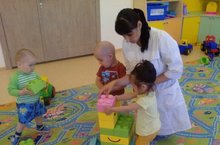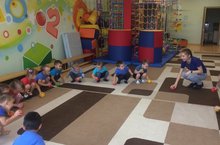Бүген икенче кечкенәләр төркемендә физкультура шөгыле булды. Балалар кечкенә туплар белән төрле күнегүләр эшләделәр, зур тупларны тәгәрәтергә өйрәнделәр. Ахырдан балалар белән “Песи һәм чыпчыклар” дигән тиз хәрәкәтле уен уйнадык. Алар бу уенны бик яратып уйнадылар.