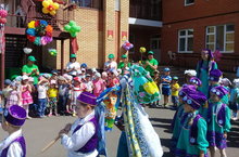 Бүген бакчабызда милли бәйрәмебез - САБАНТУЙНЫ билгеләп үттек. Йола буенча бәйрәм бирнә җыю белән башланып китте һәм аның артыннан чара күңелле милли уеннар белән дәвам итте. Аркан тартышу, чүлмәк вату, калак белән йомырка ташу кебек уеннарда балалар бик теләп катнаштылар. Ахырдан,һәр балага сабантуй истәлеге- кечкенә генә бүләкләр тапшырылды.
