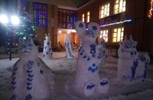 Кар ява башлауга бакчабызның һәр хезмәткәре дә сыннар ясарга чыкты. Кар сыннары конкурс положениясе шартлары буенча 2 метрдан да ким булмаска тиеш иде. Барыбыз да үзенчәлекле булсын дип тырышып ясадык. Хезмәтебез бушка узмады һәм комиссия кар фигуралары өчен 1 урынны бирде. Барлык коллективны да котлыйбыз бу нәтиҗәле матур эшләре белән!