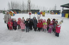 5 декабрь көнне 1 нче кечкенәләр төркеме балалары тәрбияче апалары Сабирова М.М. һәм физкультура инструкторы Закирзянова А.Р. белән урамга чыктылар. Балалар урамда кар яуганын кузәттеләр. Карнын ак һәм йомшак икәнен , кулга төшкәч эрегәнен курделәр. Саф һава сулау балаларның сәламәтлекләрен ныгыта. Баларга урамда бик ошады.