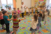 Очень важной частью работы по развитию мелкой моторики являются "пальчиковые игры". Игры эти очень эмоциональны, увлекательны. Они способствуют развитию речи, творческой деятельности. "Пальчиковые игры" как бы отображают реальность окружающего мира - предметы, животных, людей, их деятельность, явления природы. В ходе "пальчиковых игр" дети, повторяя движения взрослых, активизируют моторику рук. Тем самым вырабатывается ловкость, умение управлять своими движениями, концентрировать внимание на одном виде деятельности. "Пальчиковые игры" - это инсценировка каких-либо рифмованных историй, сказок при помощи пальцев. В нашем детском саду «Балачак» ежедневно утром воспитатель по обучению русскому языку Зарипова Л.И. проводит пальчиковую гимнастику ,а также дети разучивают новые считалки, стихи.