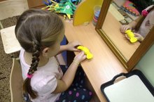 Сегодня «Лепка из цветного теста», для развития мелкой моторики пальцев рук. «Секреты» работы Эльвины Ильнуровны: – это игровая форма занятия для того, чтобы ребенок был увлечен всем происходящим, а также не понимал истинного значения проводимых упражнений. Поощрение ребенка за каждый успех, поддержка добрыми словами. Компетентность логопеда, четкое произношение всех звуков как объекта для подражания.