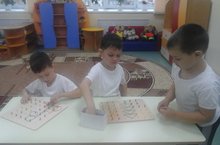 Ребята разновозрастной группы, любят играть с математическими планшетами, сделанные родителями.