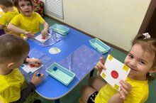 Сегодня воспитанники 2 младшей группы на занятии по аппликации украшали салфетку. На бумажную салфетку малыши клеили геометрические фигуры, закрепили названия цветов и геометрических фигур. Так же, малыши научились выкладывать узоры по образцу. Ребята с удовольствием украшали свои салфетки. Занятие прошло интересно, увлекательно и познавательно. А самое главное, что малыши получили заряд положительных эмоций от проделанной работы!