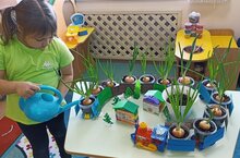 В старшей группе продолжается познавательно-исследовательская деятельность «Рост растений» в весенний период. Юные любители природы вырастили зеленые перья лука на своем мини-огороде на подоконнике. Выращивание растений на окне имеет огромное значение в познавательном развитии детей, воспитании экологической культуры, правильного поведения в природе. Как приятно видеть сияющие глаза ребят, когда они возятся на мини-огороде и наблюдают за результатами своего труда, а затем на обед с горячим супчиком съедают. Такой вид трудовой деятельности способствует развитию любознательности и наблюдательности у детей, это помогает лучше познать растительный мир.