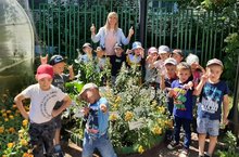 Чәчәкләргә-гөлләргә күмелеп утырган бакчабызны күргәч күңелләр күтәрелеп китә. Җәйнең коры килүенә дә карамастан "Теремок" балалар бакчасы алдында 25 тән артык төрле чәчәкләр үстерелә. Тәҗрибә кишәрлекләрендә төрле-төрле яшелчәләр үсүен,теплицада помидор кызаруын, борыч, кыяр өлгерүен балалар көн дә күзәтәләр, апаларына су сибәргә, уңыш җыярга булышып хезмәт тәрбиясе алалар. Нәниләрне дару үләннәре белән таныштыру максатыннан "даруханәче бакчасы" да оештырылган. Яз айларыннан кара көзгә хәтле шушы матурлыкны саклап хезмәт керткән тәрбиячеләргә, кече тәрбиячеләргә, бакча хезмәткәрләренә бик зур рәхмәт!