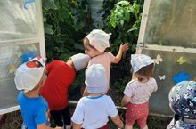 Теплицада нәрсәләр үсә? Нигә алар шундый озын? Кечкенәләр тәҗрибә кишәрлекләренә экскурсияга килделәр. Яшелчә исемнәрен кабатлап, аларның ничек үскәннәрен тикшерделәр, күзәттеләр. Аларны бигрәк тә зурлар төркеме балаларының яшелчәләргә су сибүе кызыктырды. -Үскәч без дә яшелчә үстерәбез! -диделәр нәниләр.