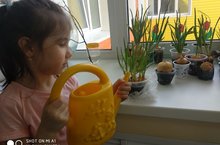 Наконец пришла долгожданная весна! Появилось солнышко, которое с каждым днём всё выше и выше, а день всё длиннее. Пришло время посадок. Старшая группа трудится как пчёлки: родители помогли с землёй, семенами, воспитатели и дети готовили ёмкости для рассады, инвентарь. Первыми высаживаем лук. Сначала рассматриваем слегка проросшие луковицы и находим росток, обращаем внимание на то, что росток и часть луковицы около него нельзя засыпать землёй после этого дети сажают луковицы в заранее приготовленные углубления. Ухаживают за ними. После долгой зимы очень кстати витамины, выращенные своими руками.