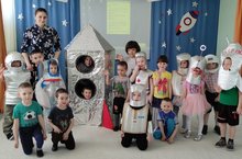 Бу вакыйгага инде 60 ел булган. Һәр елны илебез бу көнне бәйрәм итә. Бакчабызда истәлекле кәнгә багышлап төрле чаралар үткәрелде. Менә уртанчылар төркеменнән Сөнгатуллин Әмирхан һәм Сафираның әти-әнисе фотога төшү өчен ракета ясап алып килгән. Башка ата-аналар "Галәм костюмнары" конкурсына әзерләнгәннәр.