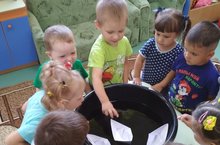 Водный мир очень красочен и ярок, но напрямую не доступен для изучения детьми. Там столько всего интересного: необычные растения и водоросли, разноцветные рыбки и грозные акулы, задорные дельфины и гигантские киты, различные транспортные средства, и столько профессий связанных с морем. Всё это интересует ребят не меньше, а порой даже больше, чем животные давно ушедших дней. Современные средства и методы обучения позволяют это сделать, что способствует «погружению» детей в интересную для них тему, делает их активными участниками образовательного процесса. Первая младшая группа изучает морскую тему.