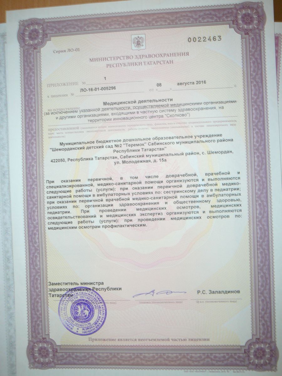 Лицензия на осуществление медицинской деятельности . Приложение