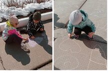 Сегодняшний день для детей средней группы выдался особенно ярким и запоминающимся. После активных игр на свежем воздухе ребята с восторгом взялись за цветные мелки, чтобы украсить асфальт своими рисунки. Каждый стремился выразить свои фантазии: на сером полотне появились цветы, солнце, бабочки, сердечки.