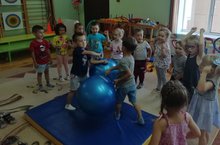 Лето – пора отдыха и веселья! Но в нашей группе мы совмещаем приятное с полезным. Воспитанники группы «Затейники» не только резвятся, отдыхают и веселятся, а делают это с пользой. Сегодня вместе с детьми мы пробовали играть в «Кольцеброс». Так как воспитанники средний группы, им нужно было не только объяснить, что нужно делать и какие соблюдать правила, но и показать наглядно. Потом дети собрались в одну колонну и начали бросать кольца на установленные перед ними 5 колышков на подставке. Расстояние между детьми и подставки с колышками составляло не более полуметра. Такая игра позволяет развивать у детей глазомер, равновесие, мышечную силу рук, умение следовать правилам игры и ориентироваться в пространстве. Конечно, с первого раза не у кого не получилось накинуть кольцо на колышек, но после усердных тренировок и попыток, у детей получилось. И столько было восторгов и эмоций у воспитанников, когда кольцо попадало на колышек. А потом дети бросали и еще и еще, пока совсем не устали. Эти радостные моменты видно на фото.