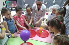 Сегодня в детском саду прошел деятельностный клубный час "Космическая экспедиция", целью которого стала позитивная социализация детей в условиях детского сада. Воспитанникам было предложено посетить четыре станции, знакомящие с Космосом и его загадками: "Планетарий", "Центр подготовки космонавтов", "Космическую лабораторию", "Кулинарный калейдоскоп". Время проведения мероприятия - 1 час. На каждой станции работали помощники - дети , которые делились со сверстниками ценной информацией, способами действия, искали причинно - следственные связи, помогали окунуться в удивительный космический мир.В результате, дети совершили "полет" в Космос, прошли ряд испытаний и оценили уровень своего здоровья, проделали опыты и эксперименты по теме и приготовили сами космическое печенье. С восторгом и массой впечатлений дети вернулись в группу и поделились друг с другом эмоциями об увиденном. А главное - получили удостоверение юного космонавта с отметкой "К полету готов!"