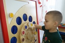 Рука, пальцы, ладошки ребенка - едва ли не главные органы, приводящие в движение механизм мыслительной деятельности детей. Тактильные ощущения позволяют ему мысленно сравнить различные поверхности и удивиться многообразию окружающей его природы. Чем тоньше тактильные ощущения малыша, тем точнее он может сравнить, объединить или различить окружающие его предметы и явления, то есть наиболее успешно упорядочить мышление. С этой целью педагог-психолог нашего детского сада Гайнуллина З.Р. на своих занятиях использует стенд «Сенсино, который способствует развитию тактильного восприятия, зрительной и тактильной памяти, коммуникативных навыков, автоматизация навыков распознавания геометрических форм, цифр, букв, различных поверхностей и животных.