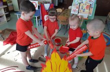 Каждый ребенок знает, что играть с огнем опасно.А чтобы знания стали прочными, воспитатели знакомят с правилами безопасного обращения с огнем и учат действовать в чрезвычайной ситуации, используя воду, песок, мокрую тряпку и огнетушитель.