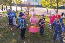 Труд в природе, часто используется, как практический метод ознакомления дошкольников с природой. Огромное количество опавших листьев убрали с участка для прогулок воспитатели и воспитанники старшей группы. Дети с воодушевлением и энтузиазмом помогали взрослым наводить порядок на участке для прогулок. С большим удовольствием ребята убирали облетевшую листву, сгребали в кучи и складывали в мешки. Розовощекие от осенней свежести и разгоряченные от работы взрослых дети дружно убирали листву, вооружившись перчатками, мешками и граблями. В процессе трудовой деятельности дети учились доводить начатое дело до конца, у них формировались представления о значимости труда для себя и окружающих, были очень довольны результатами выполненной работы.