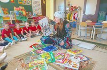 Много мероприятий было проведено в детском саду по теме "Книги - наши советчики". Одним из них стала встреча с родителем средней группы №1 Халиловой Алсу Дамировной, сотрудником районной библиотеки им. А.Каримуллина. В сказочной форме она смогла преподнести детям очень ценный и полезный материал о тех, кто трудится над созданием книг, об их разнообразии, подчеркнула необходимость чтения книг в семье и призвала детей бережно относится к произведениям словесного искусства.
